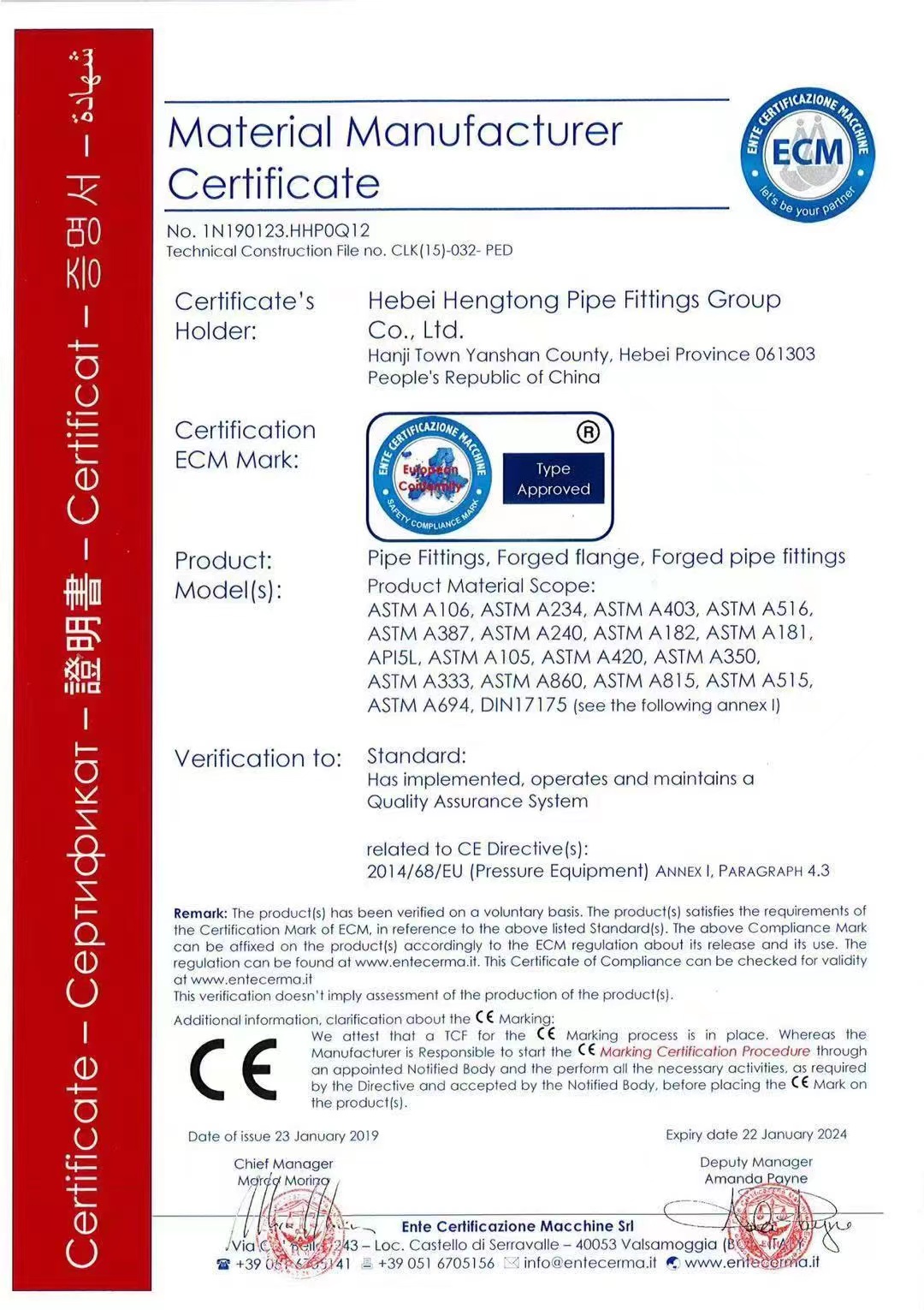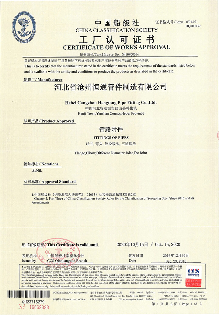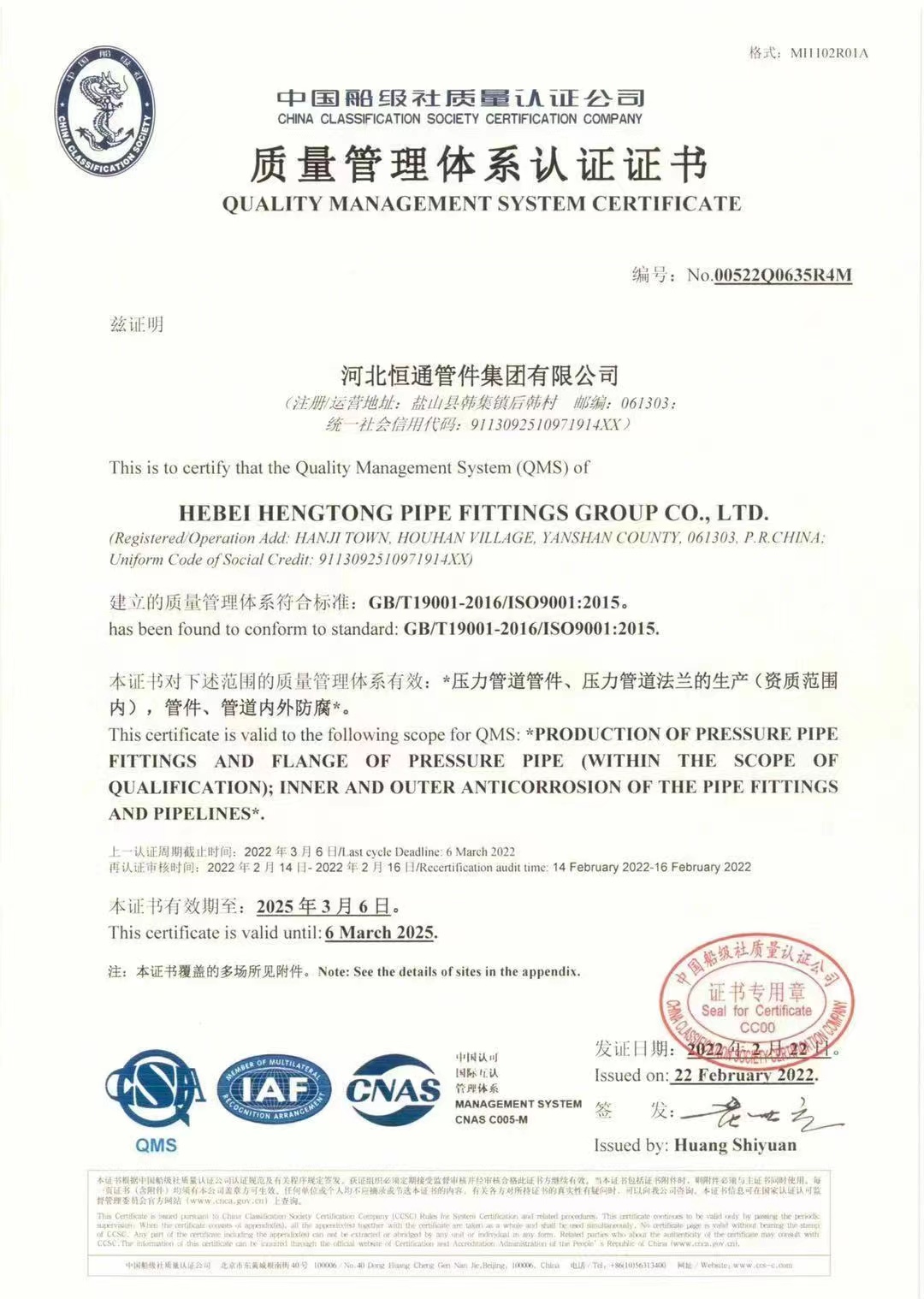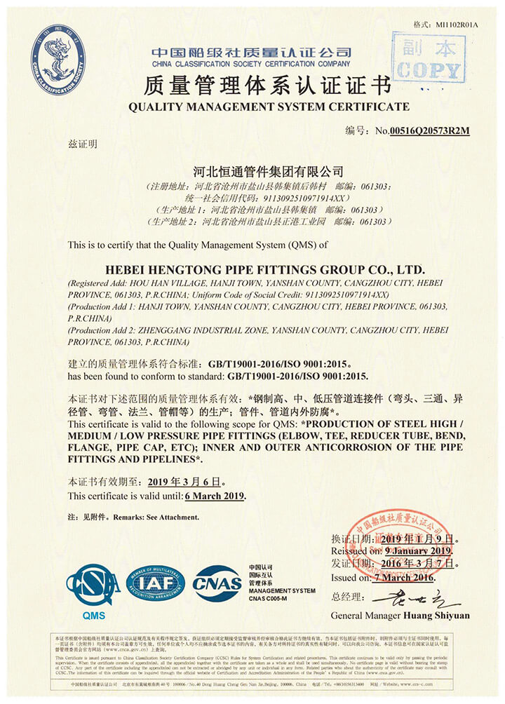 河北恒通管件集團有限公司是一家集科研開發、生產經營、技術服務于一體的鋼質管件專業制造企業,是中國石油、中國石化,一級供應網絡成員單位。公司擁有員工286人,占地面積20萬平方米,年產管件15000噸。 本公司技術力量雄厚、生產設備先進、檢測手段完備。具有國內先進的冷擠壓三通、四通、中頻感應推制彎頭。中頻感應煨制彎管等生產線8條和200-2000t液壓機等管件生產設備75臺(套),設有國家檢驗協會認定的管件檢驗機構。本公司于1998年和2002年分別通過了iso9001和美國api質量體系認證。 主要產品有無縫彎頭、有縫彎頭、彎管、三通、四通、異徑管、法蘭、承插管件、接管座等高、中、低壓系列管件,主要產品曾獲省科技成果、省優、部優和國家金獎等殊榮,產品暢銷全國,并出口中東、西歐及北美等地區。 公司秉承質量優先、服務至上的經營理念,讓我們高質量的產品架起您我合作的金橋共赴輝煌未來。